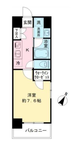 | 間取り | 1K (K2帖 , 洋室7.6帖) | ||