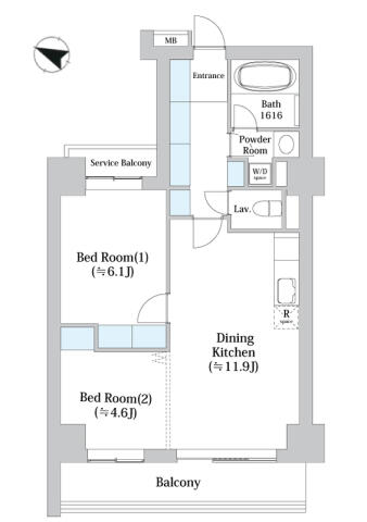 | 間取り | 2LDK LDK11.9帖 , 洋室6.1帖・4.6帖 | ||
