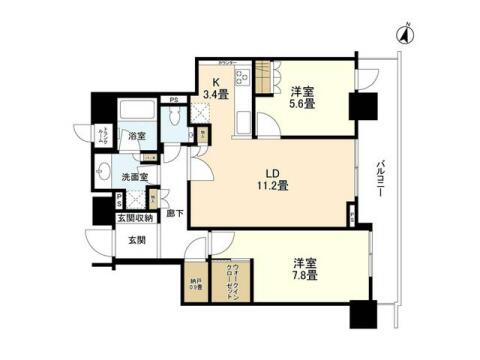 | 間取り | 2LDK LD11.2帖 , K3.4帖 ,洋室7.8帖・5.6帖 | ||