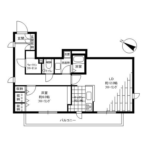 | 間取り | 1LDK (LD12帖 , K3.1 , 洋室6.0帖) | ||
