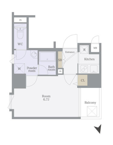 | 間取り | 1K K , 洋室6.7帖 | ||