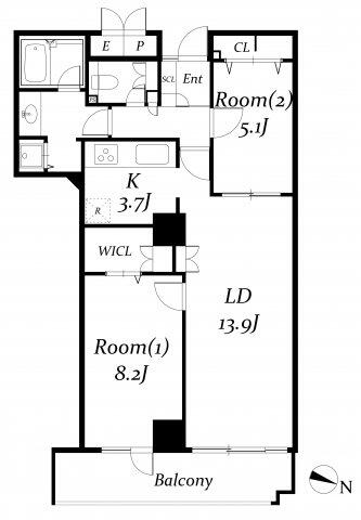 | 間取り | 2LDK (LD13.9帖 , K3.7帖 , 洋室8.2帖・5.1帖) | ||