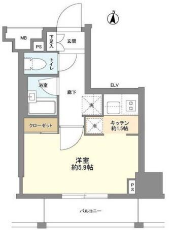 | 間取り | 1K K1.5帖 , 洋室5.9帖 | ||