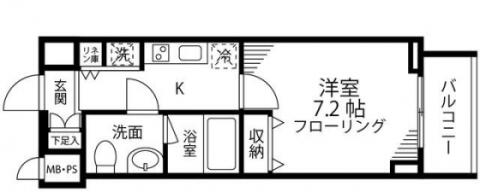 | 間取り | 1K K2帖 , 洋室7.2帖 | ||