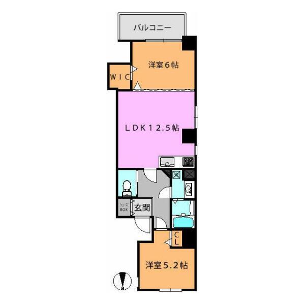 | 間取り | 2LDK (LDK12.5帖 , 洋室6.0帖・5.2帖) | ||