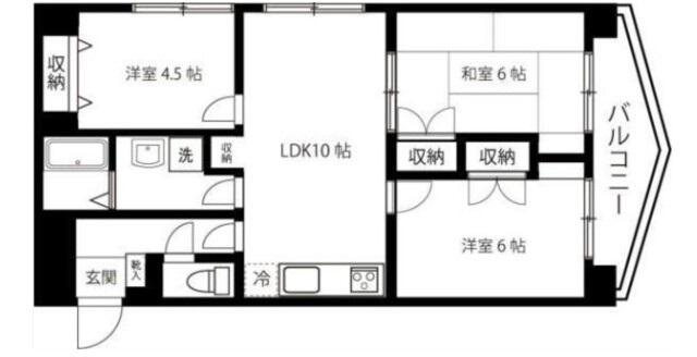 | 間取り | 3LDK (LDK10帖 , 洋室6.0帖・4.5帖 , 和室6.0帖) | ||