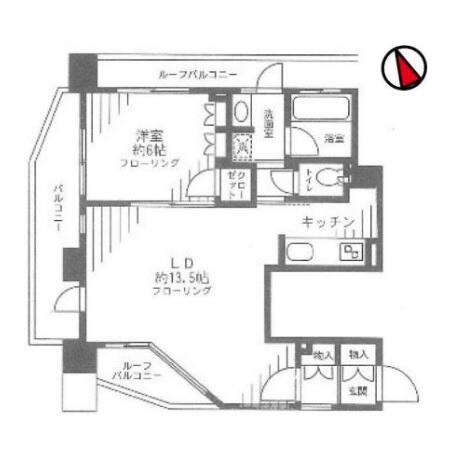 | 間取り | 1LDK (LD13.5帖 , K2.0帖 , 洋室6.0帖) | ||