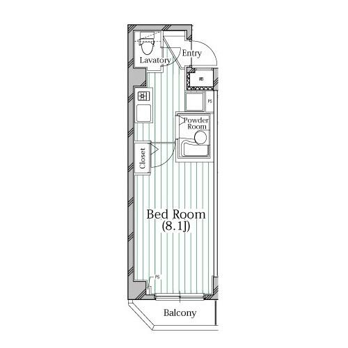 | 間取り | 1K (K , 洋室8.1帖) | ||