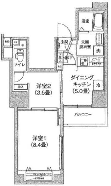 | 間取り | 2DK (DK5帖 , 洋室8.4帖・3.5帖) | ||