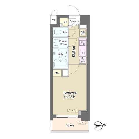 | 間取り | 1K K , 洋室7.3帖 | ||