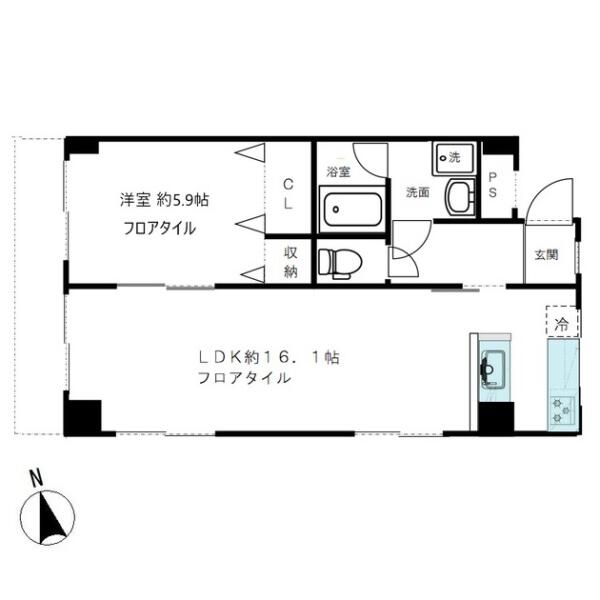 | 間取り | 1LDK (LDK16.1帖 , 洋室5.9帖) | ||