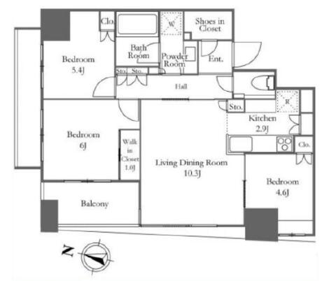 | 間取り | 3LDK LD10.3帖 , K2.9帖 , 洋室6.0帖・5.4帖・4.6帖 | ||