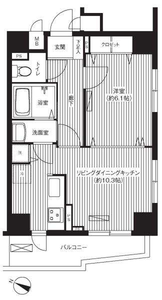 | 間取り | 1LDK (LDK10.3帖 , 洋室6.1帖) | ||