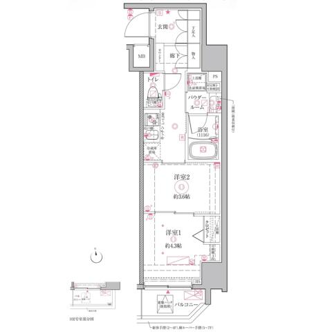 | 間取り | 2K K , 洋室4.3帖・3.6帖 | ||
