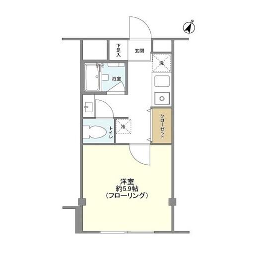 | 間取り | 1K (K , 洋室5.9帖) | ||
