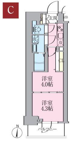 | 間取り | 2K (K2帖 , 洋室4.3帖,4.0帖) | ||