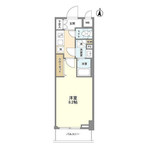 | 間取り | 1K K , 洋室8.2帖 | ||