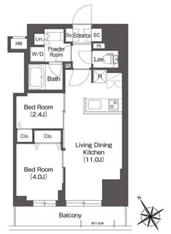 | 間取り | 2LDK LDK11帖 , 洋室4.0帖・2.4帖 | ||