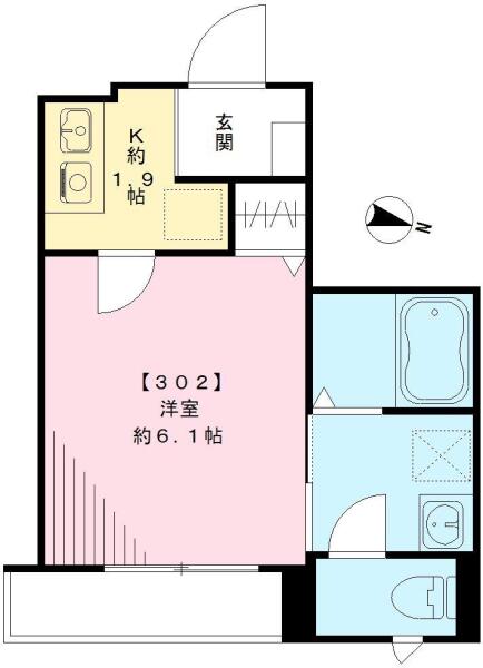 | 間取り | 1K (K1.9帖 , 洋室6.1帖) | ||