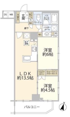| 間取り | 2LDK LDK13.5帖 , 洋室6.0帖・4.5帖 | ||