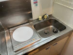 1口IHコンロ設置済み。室内で直火を使う場面がないため、はじめての一人暮らしでも安心です。