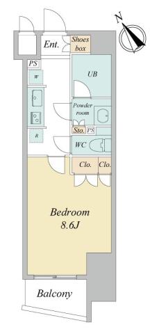 | 間取り | 1K K , 洋室8.6帖 | ||