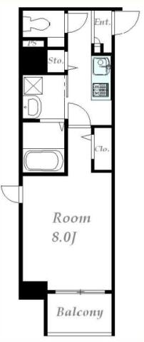 | 間取り | 1K K , 洋室8.0帖 | ||