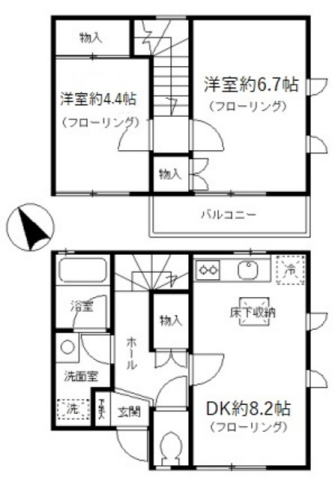 | 間取り | 2DK DK8.2帖 , 洋室6.7帖、洋室4.4帖 | ||