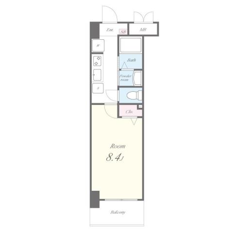 | 間取り | 1K K , 洋室8.4帖 | ||