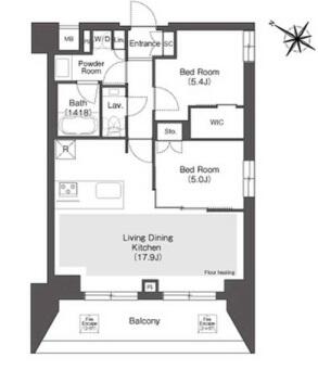 | 間取り | 2LDK (LDK17.9帖 , 洋室5.4帖・5.0帖) | ||