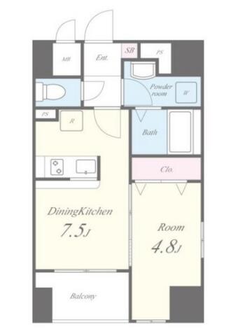 | 間取り | 1DK DK7.5帖 , 洋室4.8帖 | ||