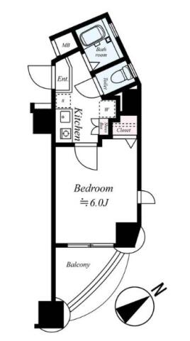 | 間取り | 1K K , 洋室6.0帖 | ||