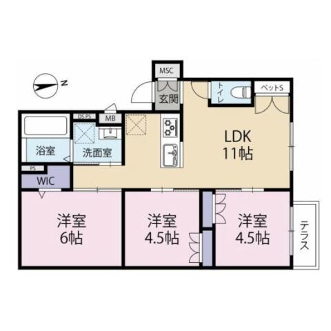 | 間取り | 3LDK LDK11帖 , 洋室6.0帖・4.5帖・4.5帖 | ||