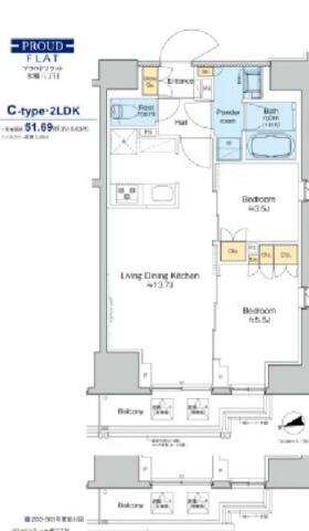 間取り | 2LDK LDK13.7帖 , 洋室5.5帖・3.5帖 | ||