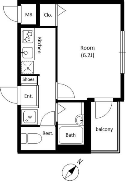 | 間取り | 1K (K , 洋室6.2帖) | ||