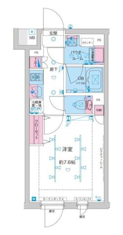| 間取り | 1K K , 洋室7.6帖 | ||