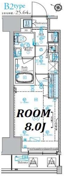 | 間取り | 1K (K , 洋室8.0帖) | ||