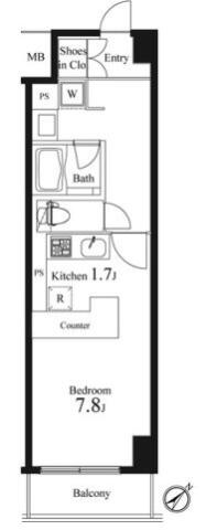 | 間取り | 1R K1.7帖 , 洋室7.8帖 | ||