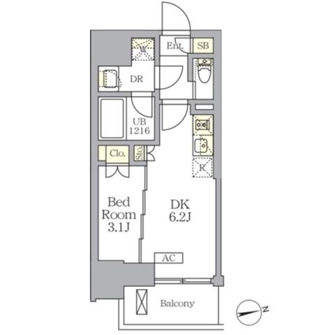 間取り | 1DK DK6.2帖 , 洋室3.1帖 | ||