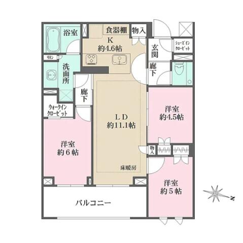 間取り | 3LDK LD11.1帖 , K4.6帖 , 洋室6.0帖・5.0帖・4.5帖 | ||