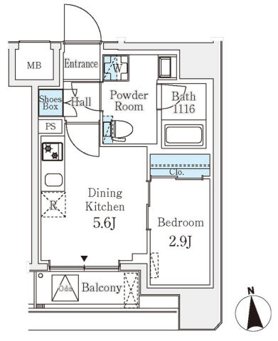| 間取り | 1DK DK5.6帖 , 洋室2.9帖 | ||