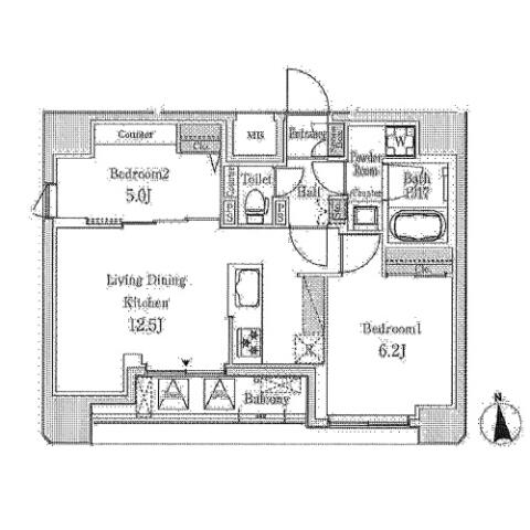 間取り | 2LDK LDK12.5帖 , 洋室6.2帖・5.0帖 | ||
