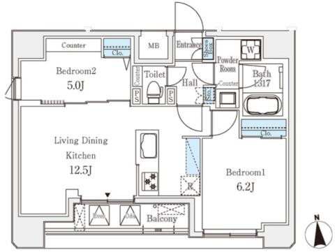 | 間取り | 2LDK LDK12.5帖 , 洋室6.2帖・5.0帖 | ||