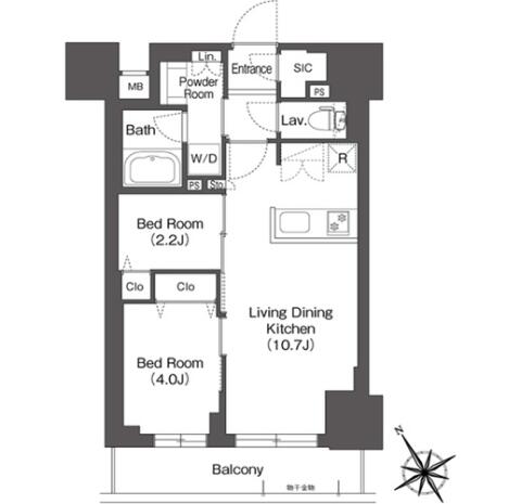 間取り | 2LDK LDK10.7帖 , 洋室4.0帖・2.4帖 | ||