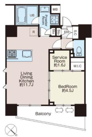 間取り | 1SLDK LDK11.7帖 , 洋室4.7帖 S1.6帖 | ||
