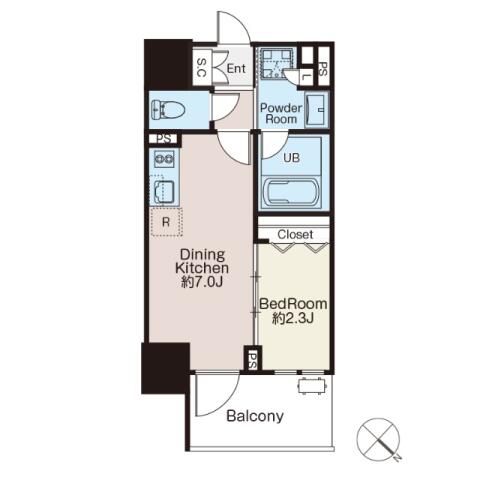 間取り | 1DK DK7帖 , 洋室2.3帖 | ||