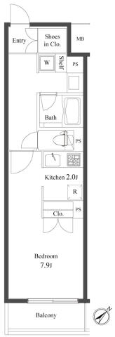| 間取り | 1K K2帖 , 洋室7.9帖 | ||