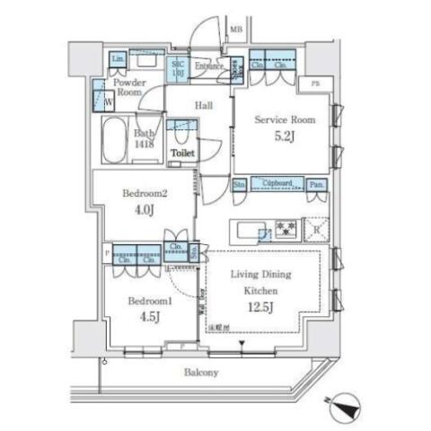 | 間取り | 2SLDK LDK12.5帖 , 洋室4.5帖・4.0帖 , S5.2帖 | ||