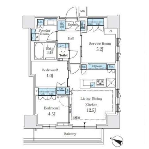 | 間取り | 2SLDK LDK12.5帖 , 洋室4.5帖・4.0帖 , S5.2帖 | ||