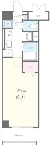 | 間取り | 1K K , 洋室9.5帖 | ||